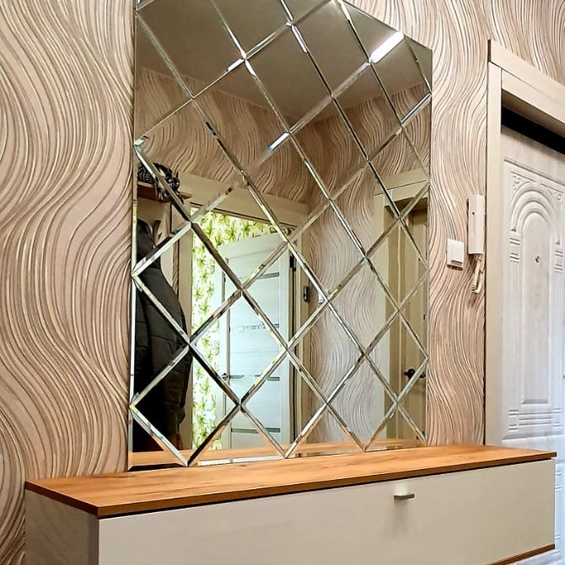 Использована зеркальная квадратная плитка с фацетом.
